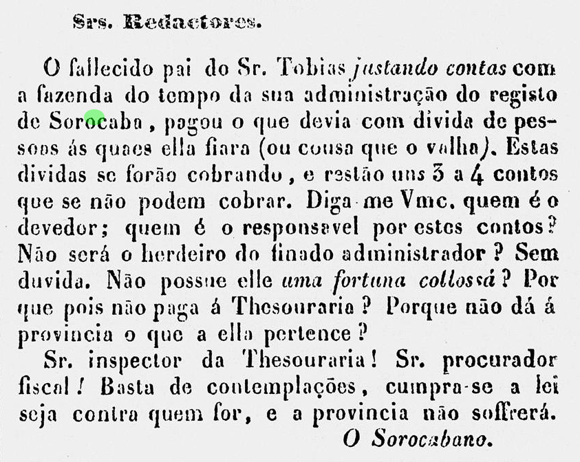 Carta ao Jornal "A Phenix" Data:01/01/1840