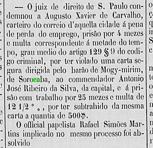 Correspondência violada Data:28/07/1860 Atualização: 31/01/2026 10:14:31