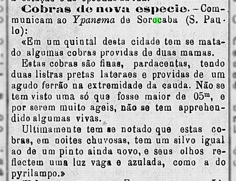 Cobras "diferentes" Data:01/01/1879