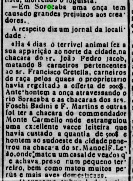 Onça em Sorocaba Data:08/01/1896