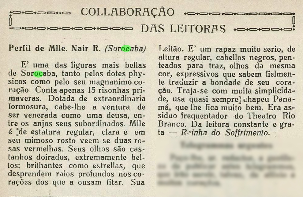 "Perfil de Mlle. Nair R." Data:01/01/1921