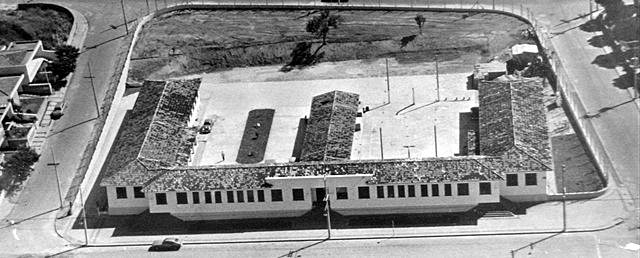 02/02/2026 02:45:29 Avenida Pereira da Silva. Antigo prédio do Senai. Atual SAAE. Vista aérea Data:1970