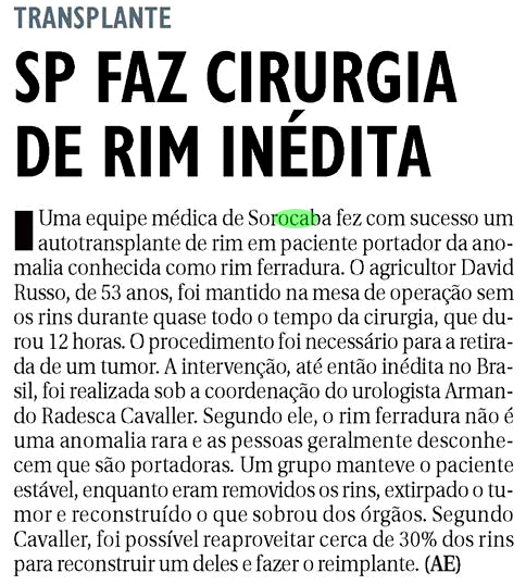 Cirurgia inéditaData:29/01/2003