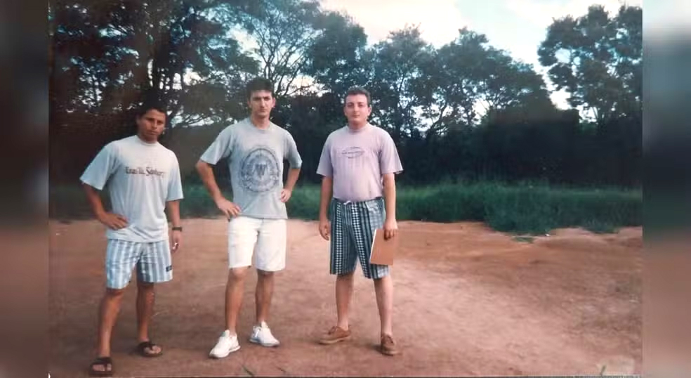 hjkh Data: 01/01/1998 Créditos/Fonte: Jorge Facury/Arquivo pessoal Da esquerda para direita estão Célio Baptista, Jorge e Michel Facury, em Sorocaba (SP), em 1998