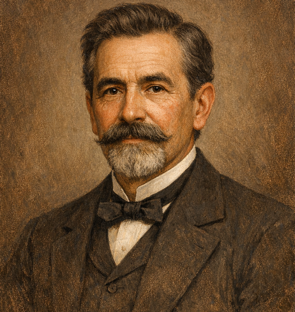 Crie um retrato de Francisco de Souza Pereira. Ele nasceu em 1848, em Castelo de Paiva, Aveiro, Portugal, filho de Ana Francisca Rosa e Bernardo Pereira