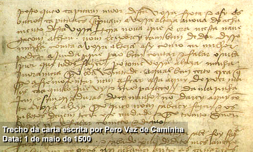 Trecho da carta escrita por Pero Vaz de Caminha Data:01/05/1500 Atualização: 18/12/2025 01:38:40