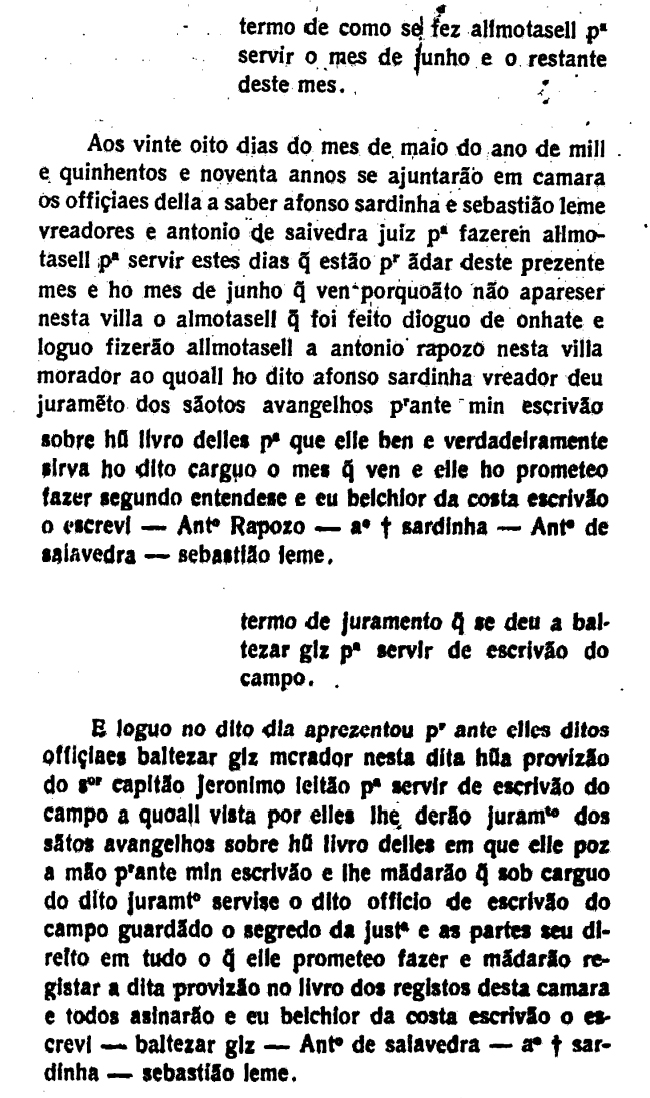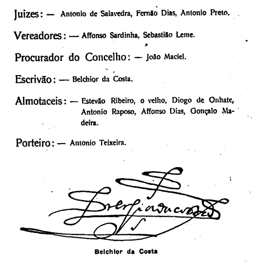 1 de janeiro de 1590 , segunda-feira Composição da Câmara • Pessoas (7) Afonso Dias (-1555 anos) Afonso Sardinha, o Velho (-1531 anos) Antônio de Macedo (ou Saavedra) ( (1531-1590)) Antonio Gomes Preto (-1521 anos) Belchior da Costa (-1567 anos) Diogo de Unhate (-1545 anos) Gonçalo Madeira (-1552 anos)