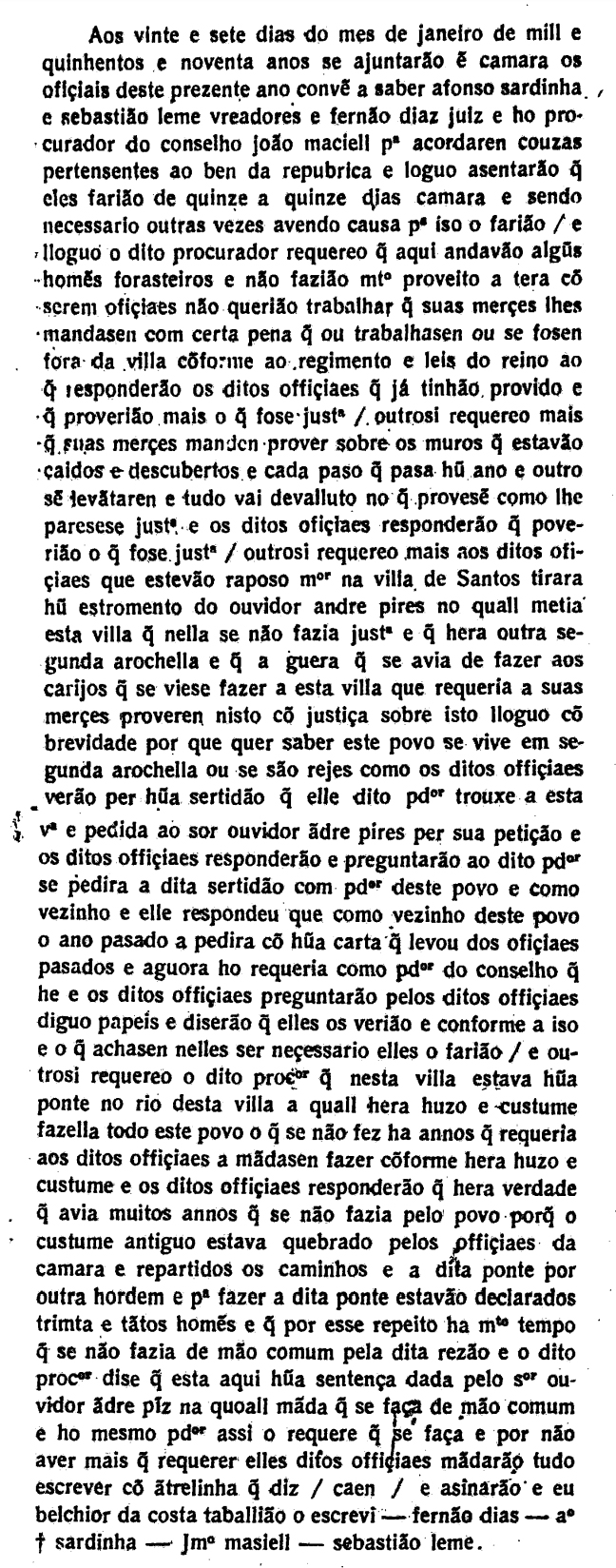 Atas da Câmara da cidade de São Paulo Data:27/01/1590