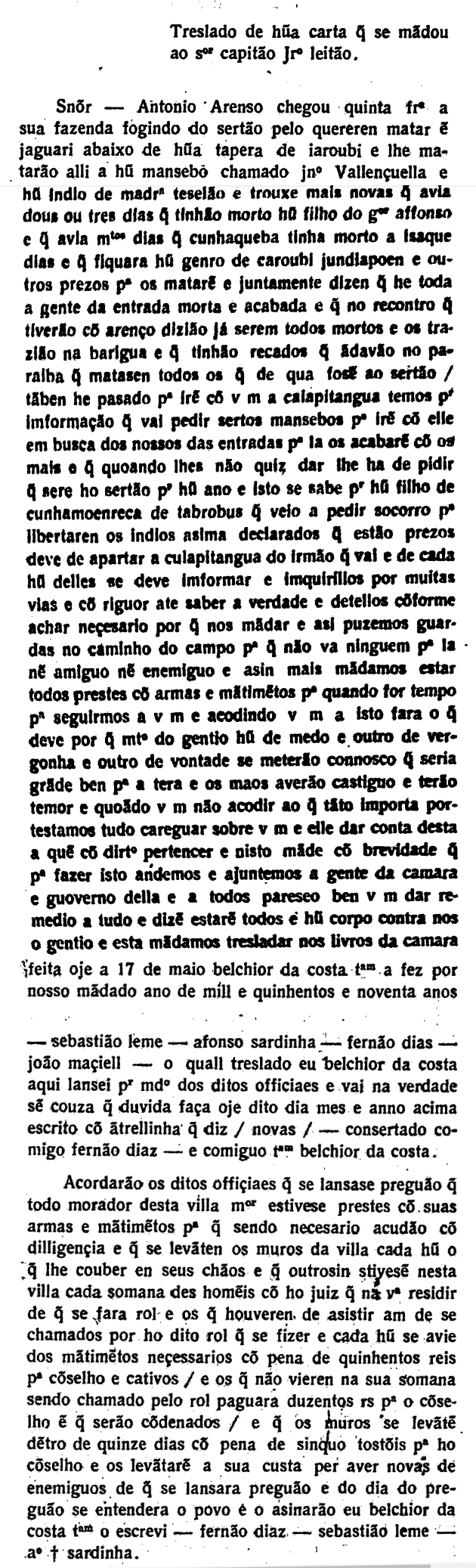 Atas da Câmara da cidade de São Paulo Data:17/05/1590