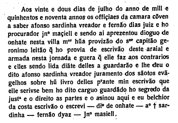Atas da Câmara da cidade de São Paulo Data:19/01/1590