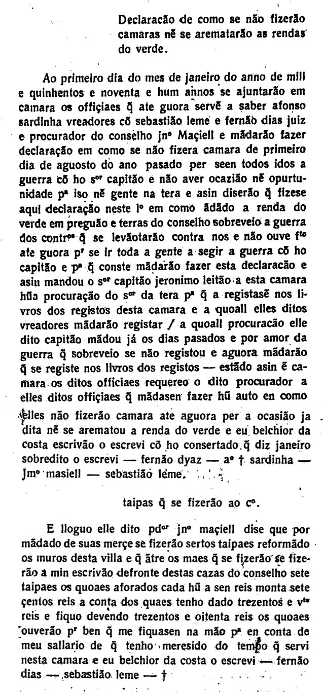 Atas da Câmara da cidade de São Paulo Data:01/01/1591