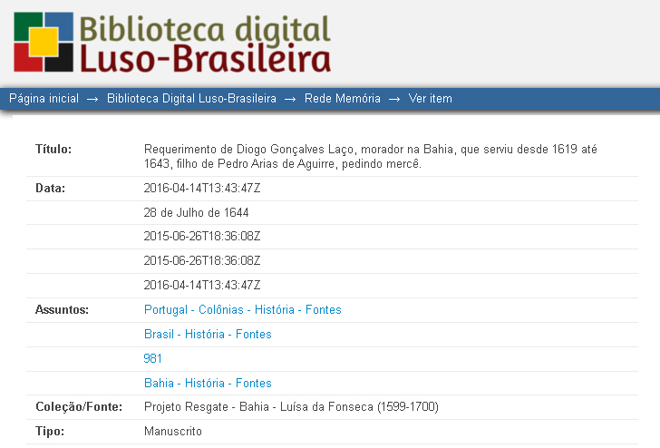 Vivo?Data:01/01/1619 Crédito/autor: Biblioteca digital luso-brasileira