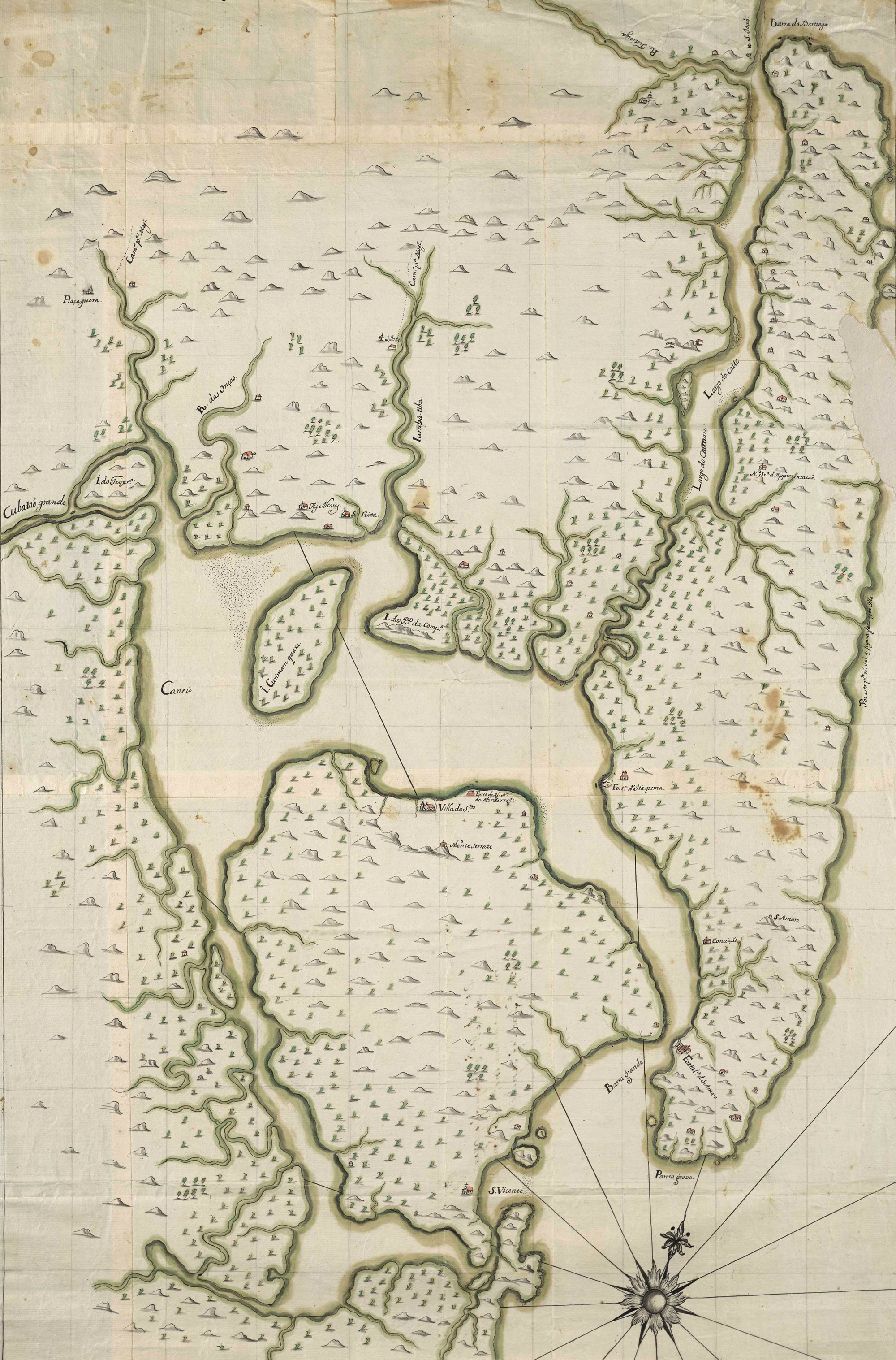 Mapa da barra de Santos desde a barra da Bertioga até o Cubatão Grande Data:1700 Crédito/autor: bdlb.bn.gov.br/acervo/handle/20.500.12156.3/15646