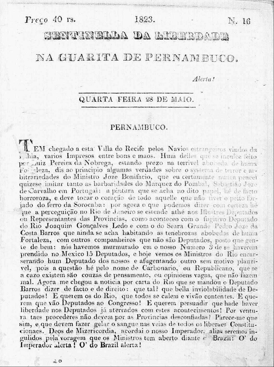 Sentinella da Liberdade na guarita de Pernambuco Data:28/05/1823
