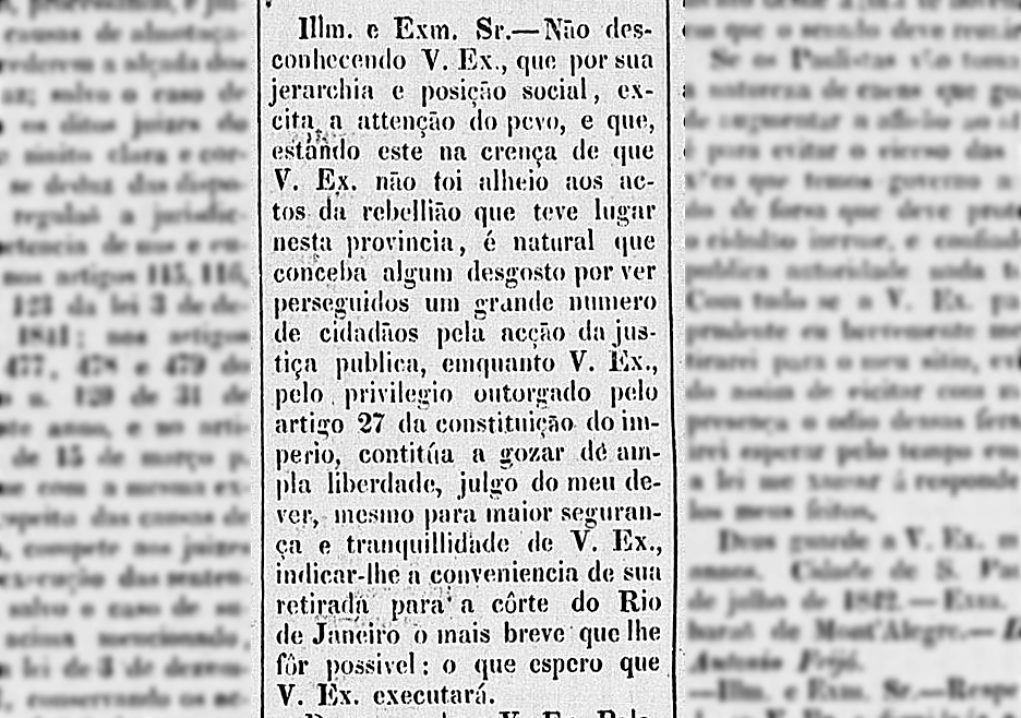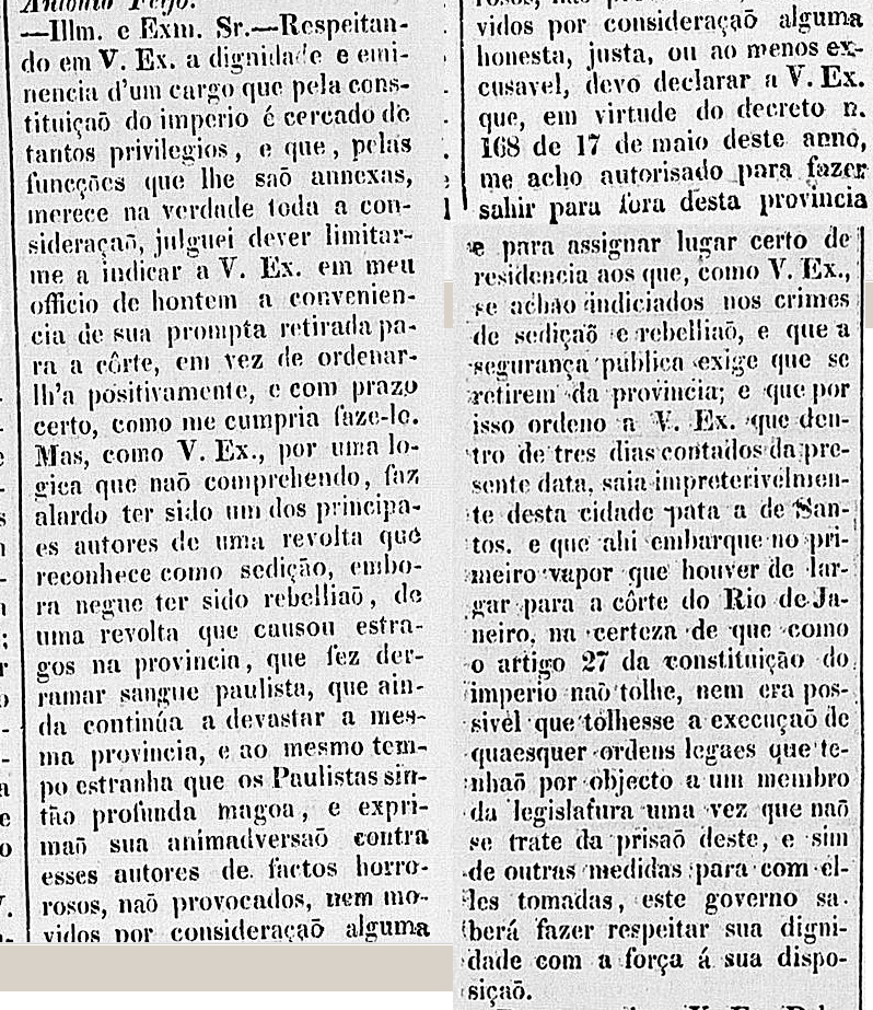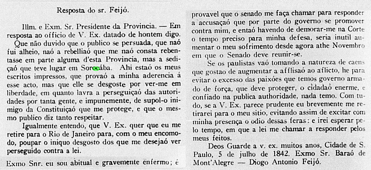 Correspondência entre Diogo Feijó e o Barão de Monte Alegre Data:02/07/1842 Crédito/autor: Publicador Maranhense Atualização: 02/02/2026 05:24:51