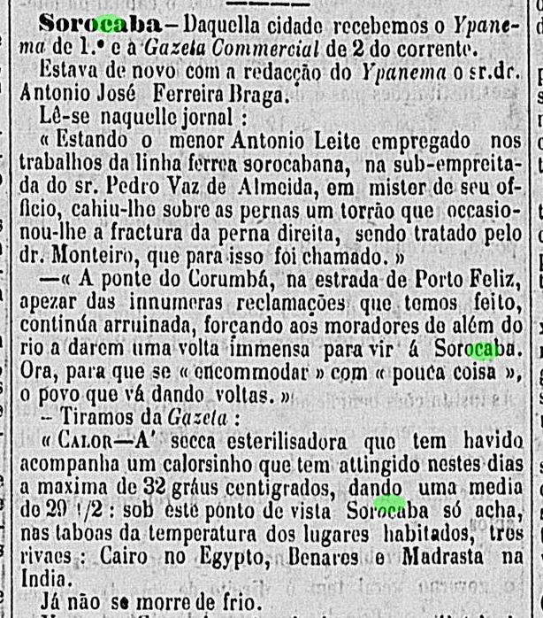 Notícias do passado Data:11/01/1874 Crédito/autor: Correio Paulistano