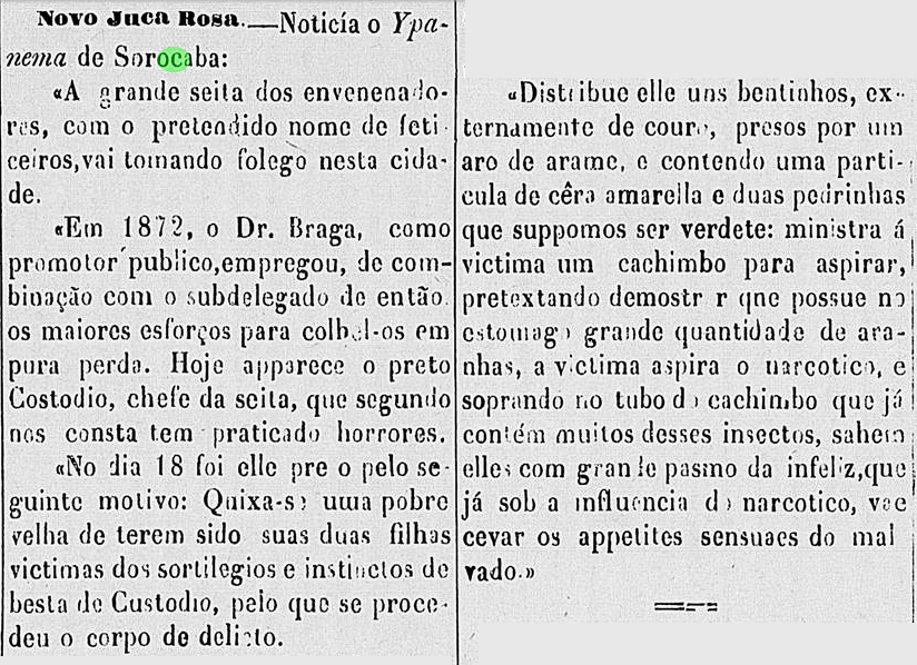 Feiticeiros em Sorocaba Data:01/01/1874 Crédito/autor: Jornal O Cearense