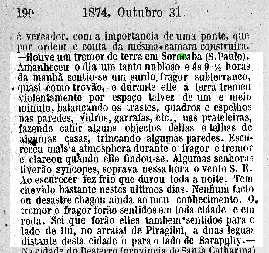 Terremoto em Sorocaba? Data:26/11/1874
