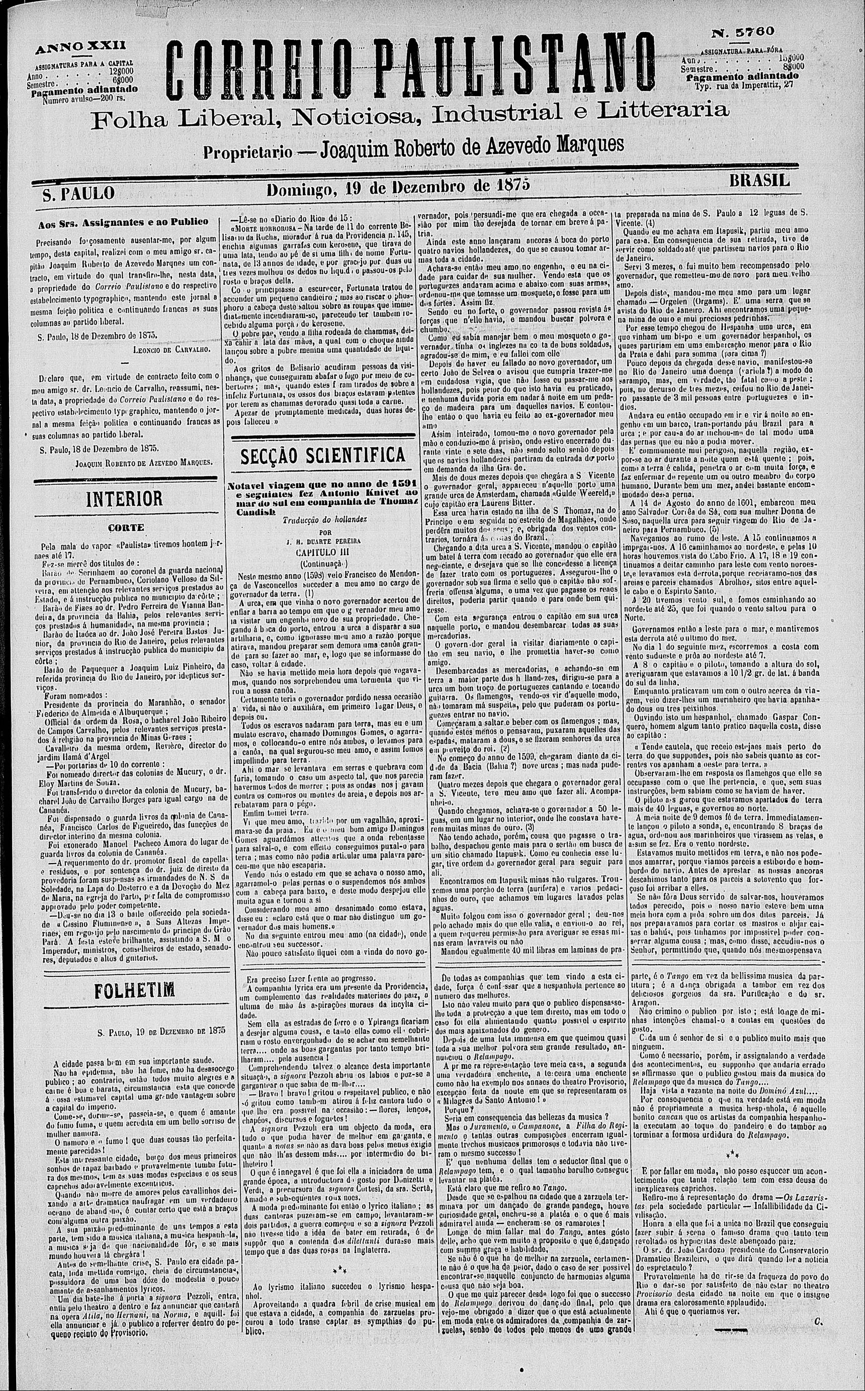 O Relato de Anthony Knivet, Jornal Correio Paulistano