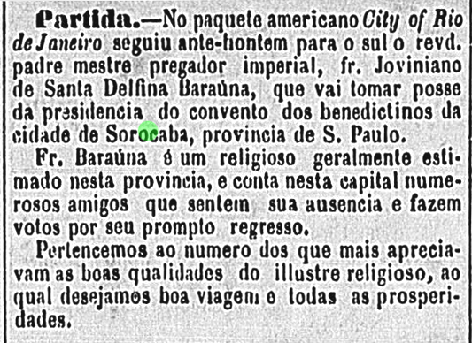 Frei Baraúna parte p/ SorocabaData:04/08/1878