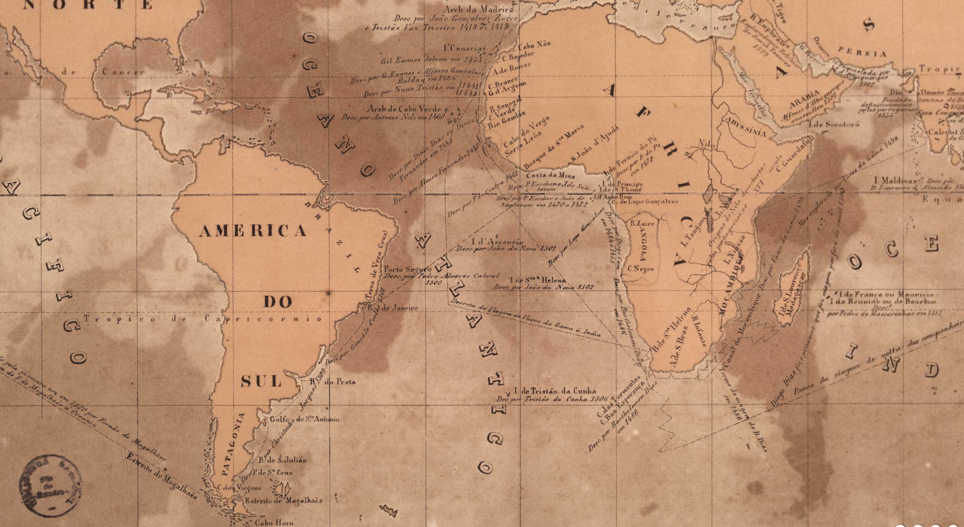 Planispherio contendo a Historia graphica dos principaes descobrimentos portuguezes nos seculos 15° e 16°. Data:01/01/1881 Crédito/autor: Emiliano Augusto de Bettencourt (1825-1886)