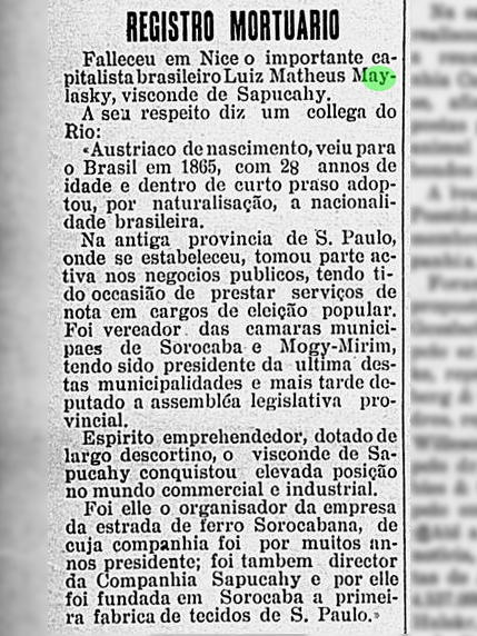 Falecimento de Luiz Matheus Maylasky Data:01/05/1906 Crédito/autor: A Federação p.2