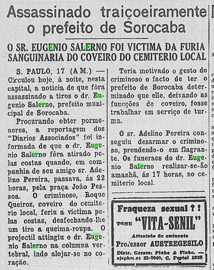 31/01/2026 05:11:15 Assassinato do Prefeito Eugênio Salerno Data:01/01/1935