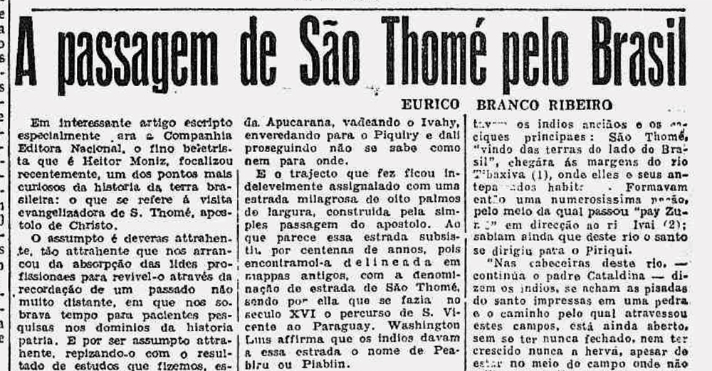 A passagem se São Thomé pelo Brasil Data:01/03/1936 Crédito/autor: Diário de Notícias, página 7 Atualização: 19/12/2025 18:37:42