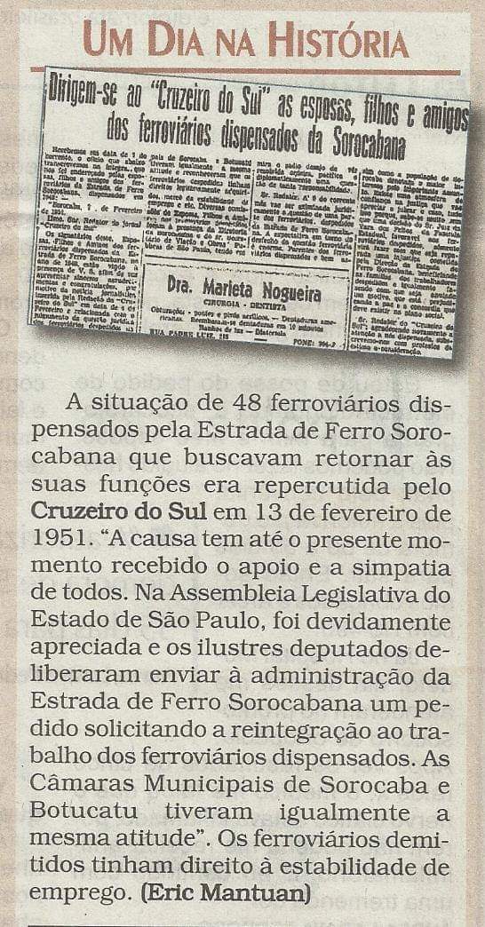 Avenida São Paulo Data:01/01/1951 Crédito/autor: Claúdio Ferreira Gaspar / Legitimidade Sorocabana Atualização: 31/01/2026 16:12:48