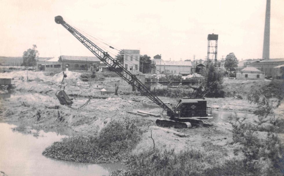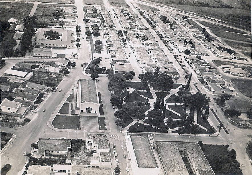 02/02/2026 02:45:29 Avenida Pereira da Silva. Antigo prédio do Senai. Atual SAAE. Vista aérea Data:1970
