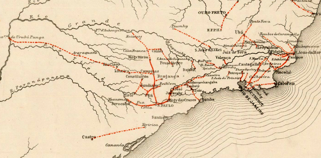 Caminhos e estradas 1876. Atualizado em 13/02/2025 06:42:31 Relacionamentos • Cidades (16): Araraquara/SP, Campinas/SP, Cananéia/SP, Castro/PR, Cotia/Vargem Grande/SP, Ibiúna/SP, Jacareí/SP, Jundiaí/SP, Limeira/SP, Mogi das Cruzes/SP, Santos/SP, São Paulo/SP, Sorocaba/SP, Taubaté/SP, Tietê/SP, Xiririca (Eldorado)/SP • Temas (6): Estradas antigas, Geografia e Mapas, Rio Paranapanema, Caminhos/Estradas até Ibiúna, Caminho até Cotia, Rodovia Raposo Tavares ![]()