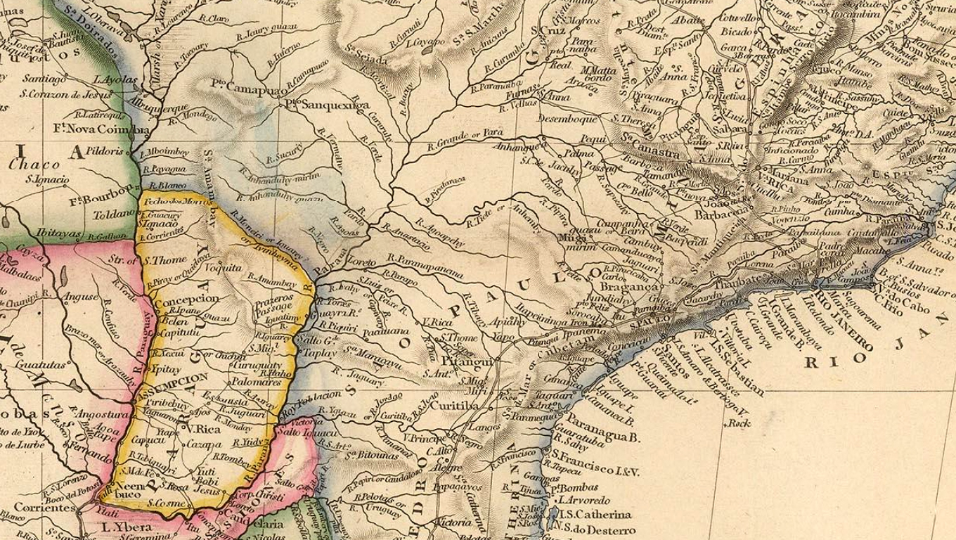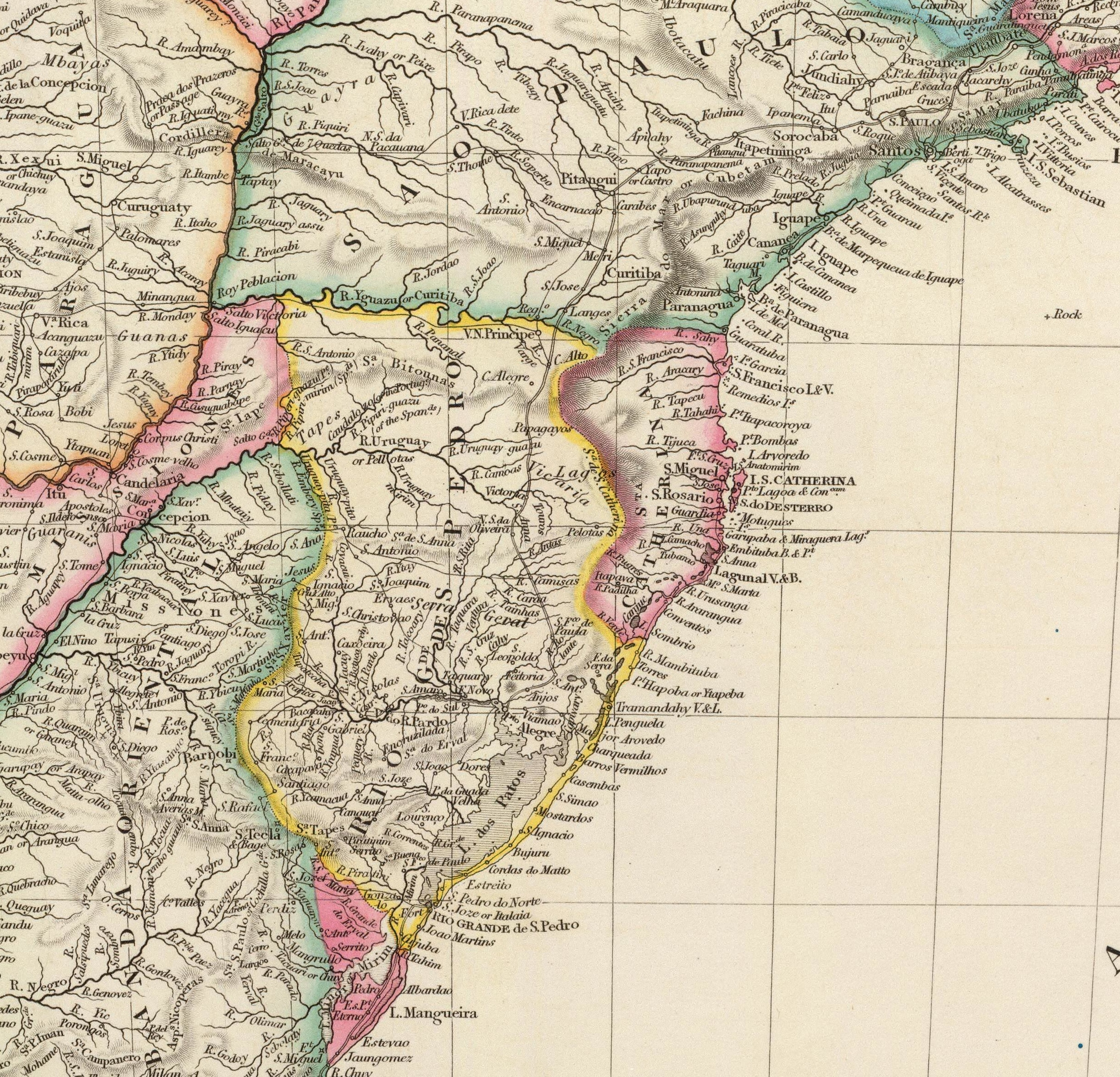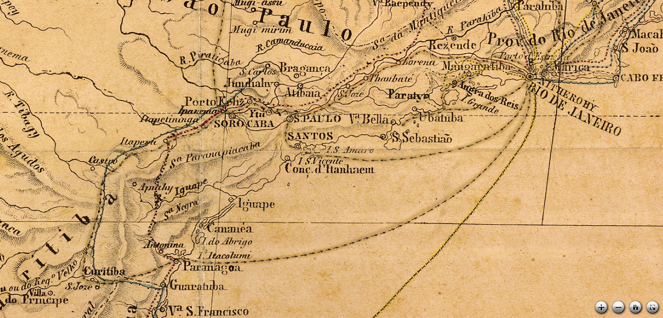 Mapa "Brazil" de John Arrowsmith 1 de janeiro de 1844, segunda-feira. Atualizado em 25/02/2025 04:47:12 Relacionamentos • Cidades (10): Antonina/PR, Araçoiaba da Serra/SP, Castro/PR, Curitiba/PR, Itu/SP, Paranaguá/PR, Paranapanema/SP, São Paulo/SP, São Roque/SP, Sorocaba/SP • Temas (11): Assunguy, Caminho das Tropas, Caminho de Curitiba, Caminho Itú-Sorocaba, Caminho Sorocaba-Itapetininga, Estradas antigas, Geografia e Mapas, Hiapó, Rio Juquiá, Rio Paranapanema, Serra de Cubatão ![]()