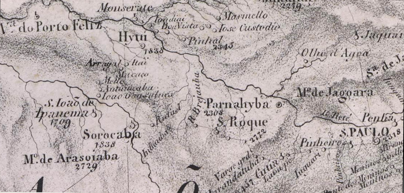 Detalhe do mapa "Costa do Brasil desde a ponta de Itapetininga, São Paulo, até o rio Imbou ao sul da Ilha de Santa Catarina" 1750. Atualizado em 13/02/2025 06:42:31 Relacionamentos • Cidades (17): Araçariguama/SP, Atibaia/SP, Carapicuiba/SP, Cotia/Vargem Grande/SP, Itanhaém/SP, Itapecirica da Serra/SP, Itapetininga/SP, Itu/SP, Jundiaí/SP, Mogi das Cruzes/SP, Porto Feliz/SP, Santo Amaro/SP, Santos/SP, São Paulo/SP, São Roque/SP, São Vicente/SP, Sorocaba/SP • Temas (23): Caminho de Pinheiros (Itú-SP), Caminho de São Roque-Sorocaba, Estrada Geral, Caminho do Mar, Caminho do Mar (Santo Amaro), Caminho Itú-Porto Feliz, Caminho Itú-Sorocaba, Caminho Sorocaba-Itapetininga, Ermidas, capelas e igrejas, Estradas antigas, Fazenda Ipanema, Geografia e Mapas, Itapeva (Serra de São Francisco), Ouro, Pontes, Registro de Animais, Rio de São Lourenço, Rio Jundiaí, Rio Juquiá, Rio Juquiri, Rio Sorocaba, Rio Ypanema, Soroca-mirim ![]()