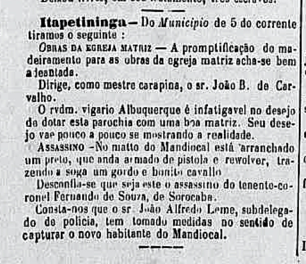 Jornal Diário de São Paulo 15 de fevereiro de 1870, terça-feira. Atualizado em 13/02/2025 06:42:31 Relacionamentos • Cidades (2): Itu/SP, Sorocaba/SP • Temas (2): Estradas antigas, Fazenda Ipanema ![]()