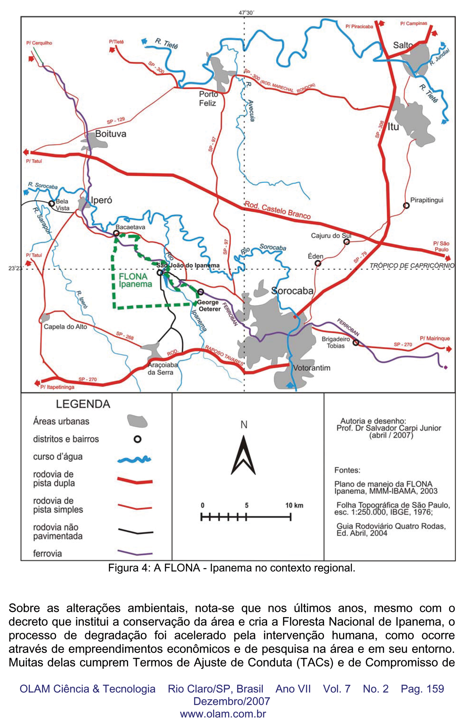 Atrativos, riscos e vulnerabilidade ambiental na Floresta Nacional de Ipanema, São Paulo 2007. Atualizado em 13/02/2025 06:42:31 Relacionamentos • Cidades (10): Araçoiaba da Serra/SP, Boituva/SP, Capela do Alto/SP, Iperó/SP, Itapetininga/SP, Mairinque/SP, Porto Feliz/SP, São Paulo/SP, Sorocaba/SP, Votorantim/SP • Pessoas (1) Coaracy • Temas (17): Avecuia, “terra que cai”, Bairro de Brigadeiro Tobias, Bairro Éden, Sorocaba, Bacaetava / Cahativa, Cajurú, Caminho Sorocaba-Porto Feliz, Cuaracyberá, Estradas antigas, Geografia e Mapas, Pirapitinguí, Rio Anhemby / Tietê, Rio Sorocaba, Rio Ypanema, Rodovia Castelo Branco, Rodovia Raposo Tavares, Trópico de Capricórnio, Villeta, “George Oetterer” ![]()