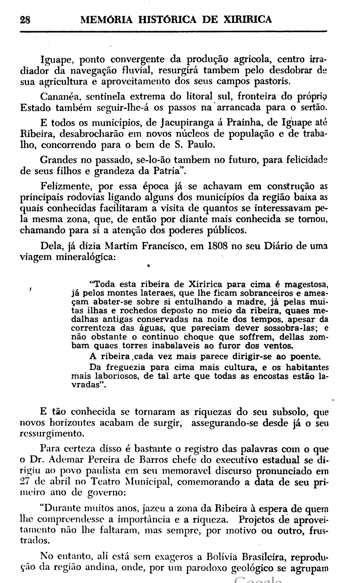 Atualizado em 31/10/2025 00:32:05 Memória Histórica de Xiririca (El Eldorado Paulista), Antônio Paulino de Almeida ![]() Data: 1940 Página 15
