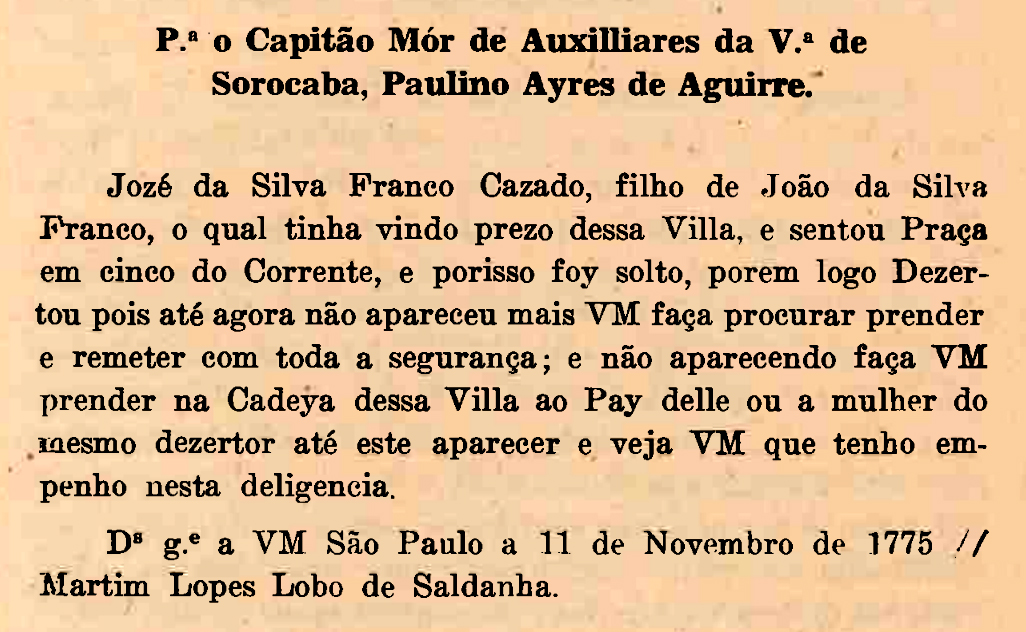 1776 Salvador de Oliveira Leme é o Capitão-mor de Itapetininga, residente em Sorocaba • Pessoas (2) Martim Lopes Lobo de Saldanha () Salvador de Oliveira Leme (55 anos)