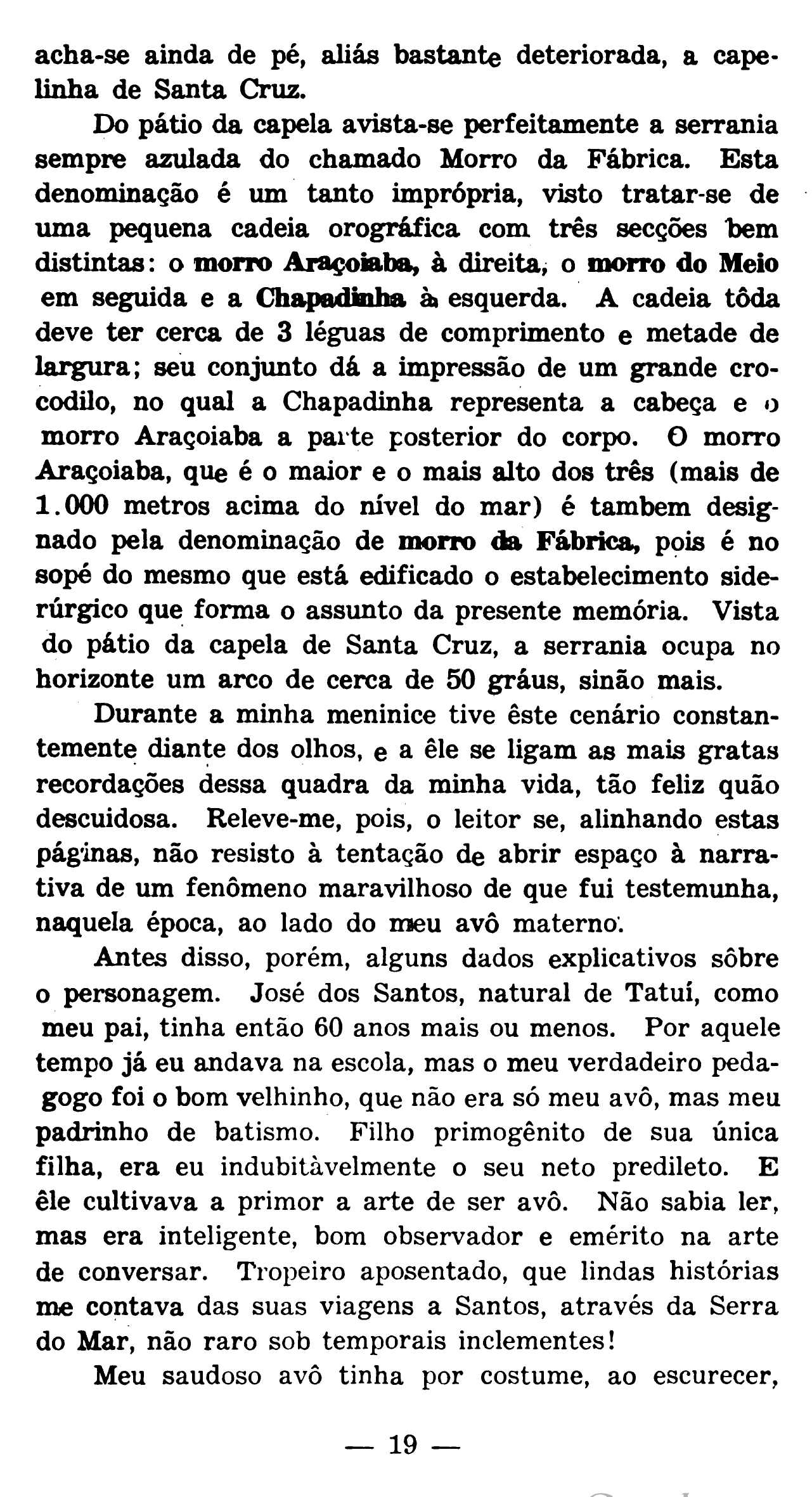 Registros mencionados (17): 22/02/1615 - Por falecimento de Manoel Rodrigues lhe ficou um filho por nome Balthezar de idade de dez até onze anos vai com o Capitão André Fernandes com as peças que ficaram do dito defunto as quais são estas: Manoel, Paulo, Loreta, Tomé, Quinaimguaia, uma moça apuatyara, hoje 22 de fevereiro de 1615 eu escrivão o escrevi por mandado do capitão André Fernandes. 25/04/1616 - Tamboladeira 13/06/1628 - Aberto o inventário de Antônio Gonçalves (Pires) 24/09/1638 - Pero Domingues obteve uma sesmaria 03/01/1768 - Carta de Luís António de Sousa Botelho Mourão a Sebastião José de Carvalho e Melo 01/01/1797 - *Fábrica 23/01/1803 - Martim Francisco visitou a fazenda dos Madureira onde lhe mostraram um poço de exploração abandonado da prata, e que devia datar de 1684 01/01/1805 - *Escola 01/01/1806 - *Casamento 01/09/1809 - Chega em Sorocaba o sueco Frederico Luiz Guilherme de Varnhagem* 01/12/1809 - Ipanema* 01/01/1810 - *Visita a Sorocaba 17/07/1810 - “Processo sobre a fábrica de ferro da vila de Sorocaba e das minas de São João do Ipanema, da capitania de São Paulo. Constam ofícios, informações e relações trocadas relativas ao assunto em causa” 08/07/1811 - Primeira referência à capelania do Ipanema 01/01/1870 - *Corria a lenda 03/12/1942 - Apontamentos para a História da Fábrica de Ferro do Ipanema, 03.12.1942. Prof. João Lourenço Rodrigues (1869-1954), Itapetininga/SP 01/01/2024 - Aberto testamento de Pero de Araujo Rafael Tobias de Aguiar Imagens (10º de 53 )