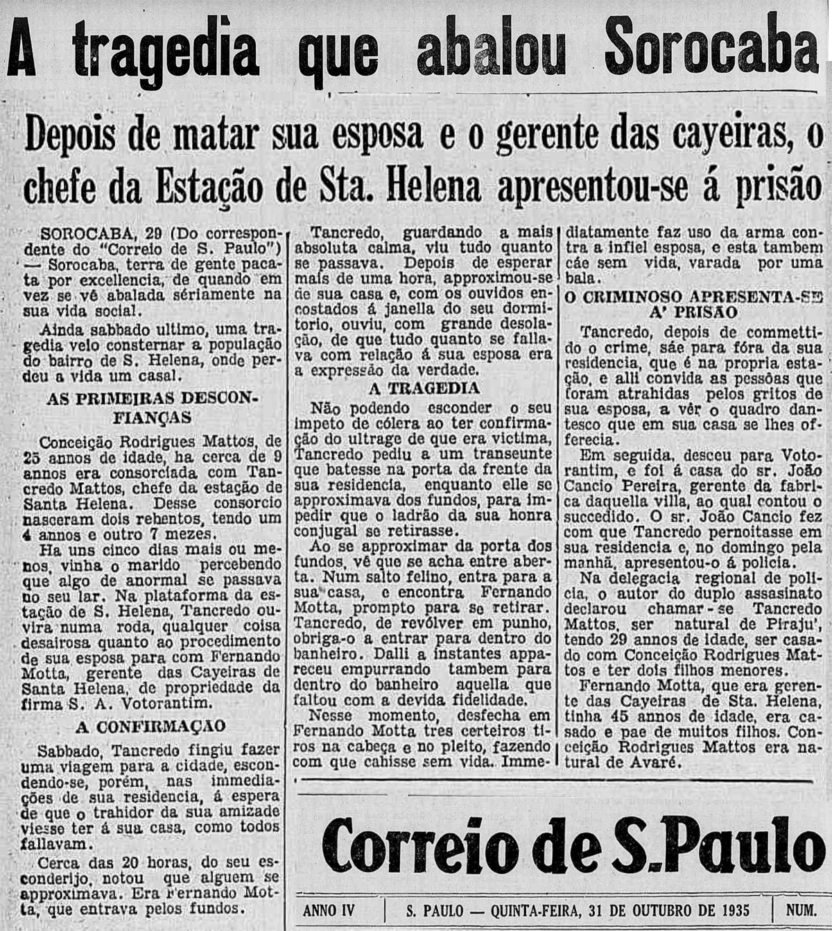 29 de outubro de 1935 , sexta-feira “A Tragédia que abalou Sorocaba” • Temas (2) Assassinatos (325) Grupo Votorantim (21)