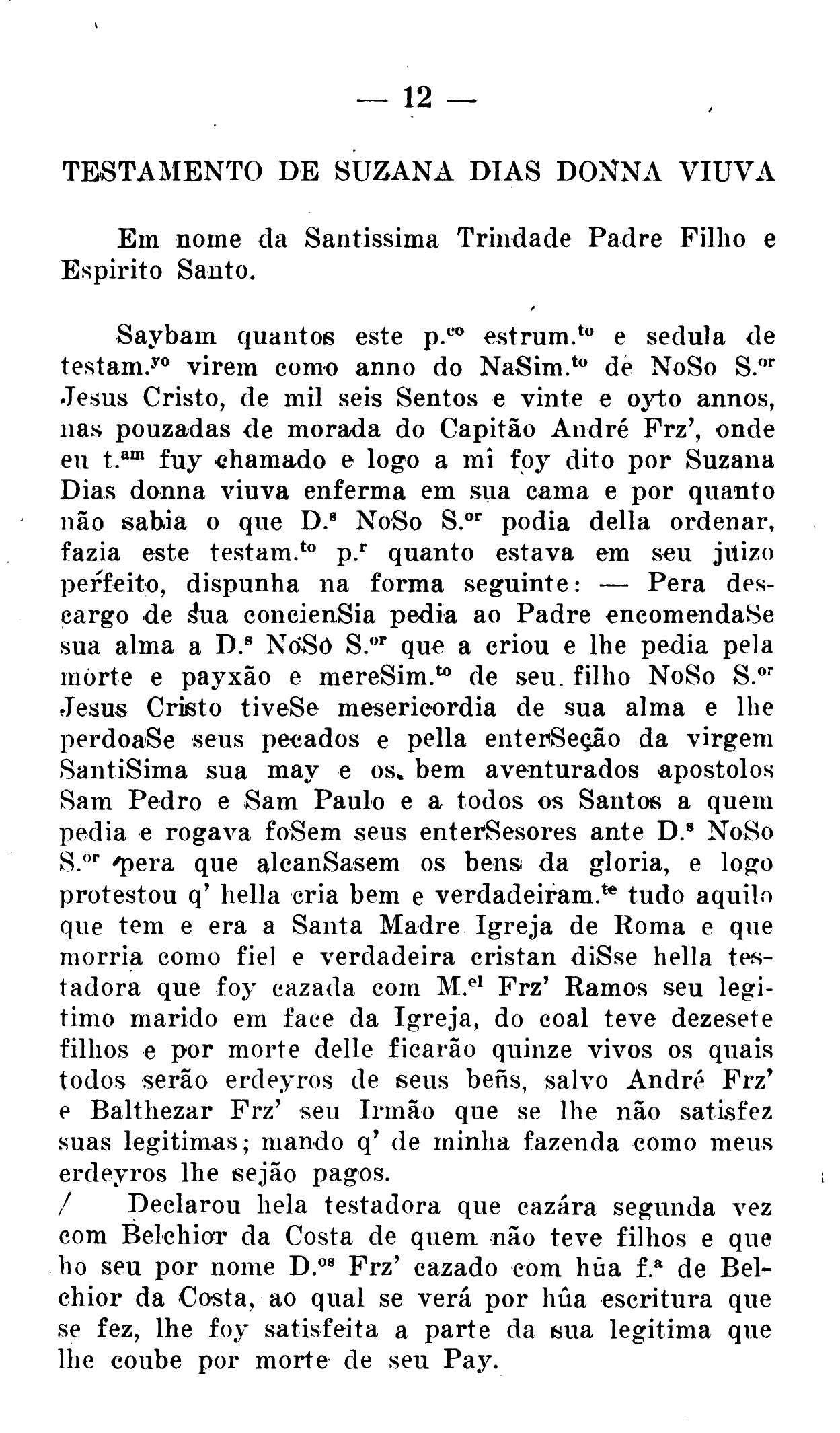 *Inventários e testamentos, vol. XXXIII, 1946. Documentos da seção do arquivo histórico Cidades (5) Barueri/SP Santana de Parnaíba/SP Santo Amaro/SP São Paulo/SP Sorocaba/SP Pessoas (10) André Fernandes (1578-1641) Balthazar Fernandes (1577-1670) Custódia Dias (1581-1650) Gabriel de Lara (f.1694) Gaspar de Brito João Pimentel Jorge Moreira (n.1525) Juan del Campo y Medina Luís Eanes Grou (1573-1628) Suzana Dias (1540-1632) Temas (2) Arquivo Histórico Municipal (SP) Jurubatuba, Geraibatiba Imagens (8) 27 de janeiro de 1943 , sexta-feira “Ecos das comemorações aos 389°. aniversário da fundação de São Paulo”. Discurso do prefeito de São Paulo, Prestes Maia, Jornal Diário de Notícias • Temas (4) Ambuaçava (74) Estradas antigas (0) Jesuítas (535) São Paulo de Piratininga (140)