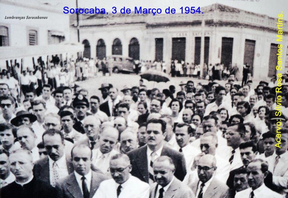 Inauguração do relógio da Praça Nicolau Scarpa Data: 03/03/1954 Créditos/Fonte: Silvio Rosa Santos Martins Com Comendador Heitor Antunes, Dr. Emerenciano Prestes de Barros e Wesceslau Correia Lacerda (Rua Cel. Benedito Pires (ps) (emm) (£) (!) (mf)
