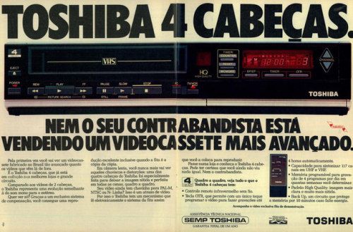 SHARP LANÇA O PRIMEIRO VIDEOCASSETE DOMÉSTICOPublicado na Folha de S.Paulo, sexta-feira, 26 de fevereiro de 1982Apostando numa pesquisa que coloca o brasileiro como o povo que mais assiste televisão no mundo e tem na TV uma de suas principais fontes de lazer, a Sharp S/A Equipamentos Eletrônicos lança dia 8 no mercado o primeiro videocassete brasileiro de uso doméstico.