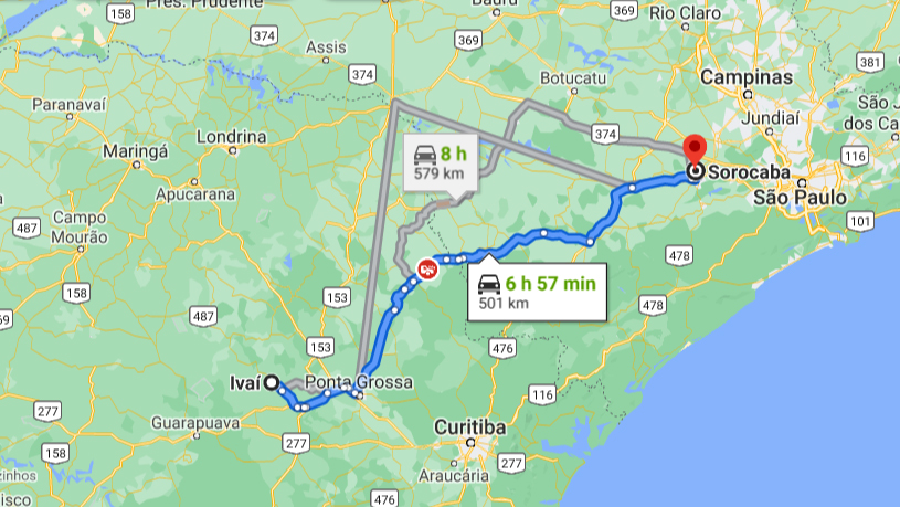 Abertura do Caminho até Ivaí Data: 06/06/1770 Créditos/Fonte: Reprodução Googles Mapas (mapa