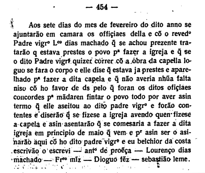 “Padre Vigário Lopo Dias Machado estava prestes a fazer a igreja”