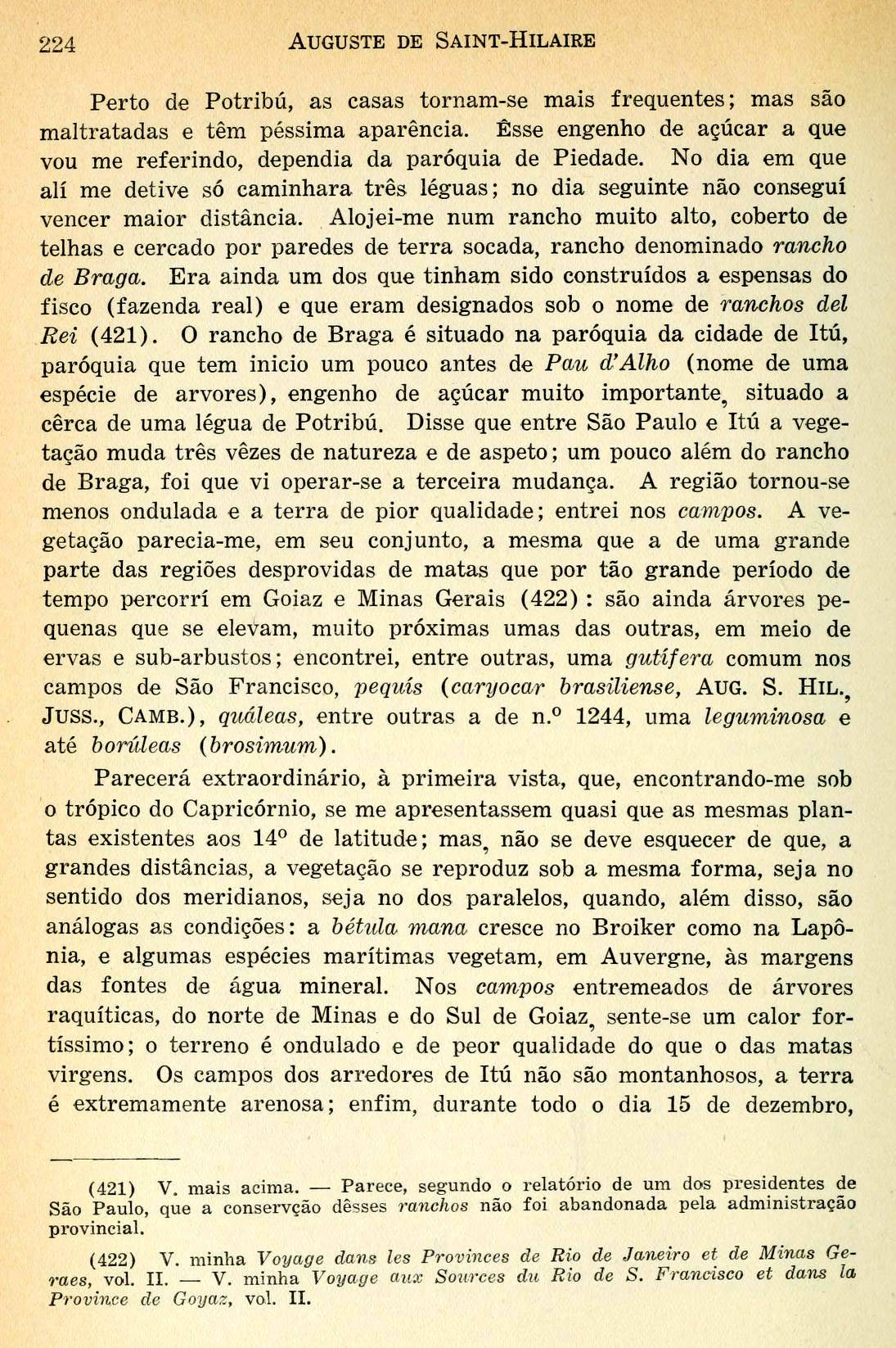 Viagem à provincia de São Paulo e Resumo das viagens ao Brasil, provincia Cisplatina e missões do Paraguai Data: 01/01/1940 Créditos/Fonte: Auguste de Saint-Hilaire (1779-1853) Página 224 ID: 11627