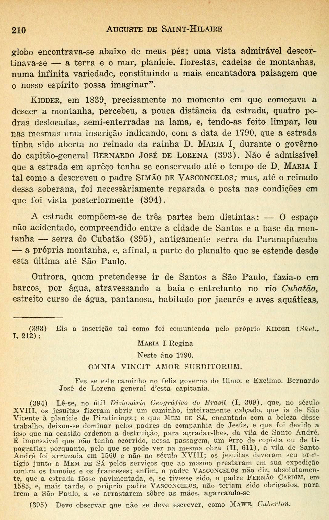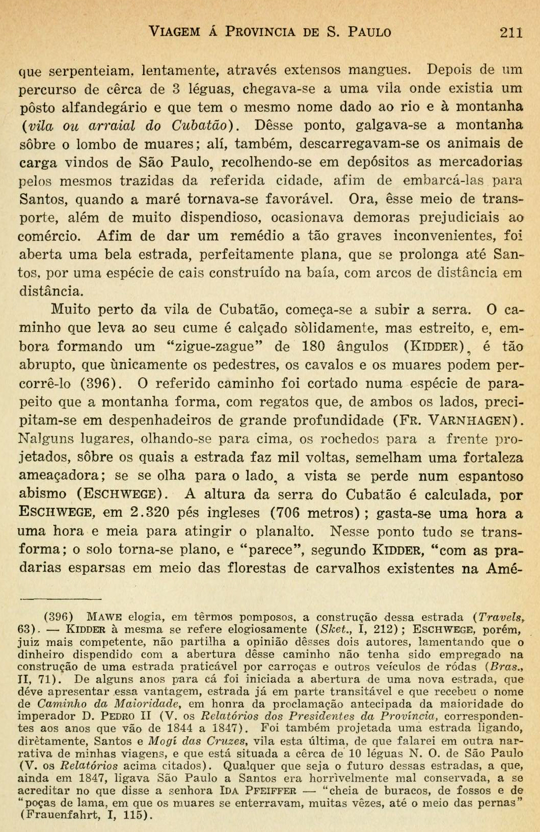 Lê-se, no útil Dicionário Geográfico do Brasil (I, 309), que, no século XVIII, os jesuítas fizeram abrir um caminho, inteiramente calçado, que ia de São Vicente à planície de Piratininga; e que Mem de Sá, encantado com a beleza desse trabalho, deixou-se dominar pelos padres da companhia de \jesus, e que foi devico a isso que na ocasião ordenou a destruição, para agradar-lhes, da vila de Santo André. (“Viagem à provincia de São Paulo e Resumo das viagens ao Brasil, provincia Cisplatina e missões do Paraguai”. Auguste de Saint-Hilaire (1779-1853). Páginas 209 e 2010)
