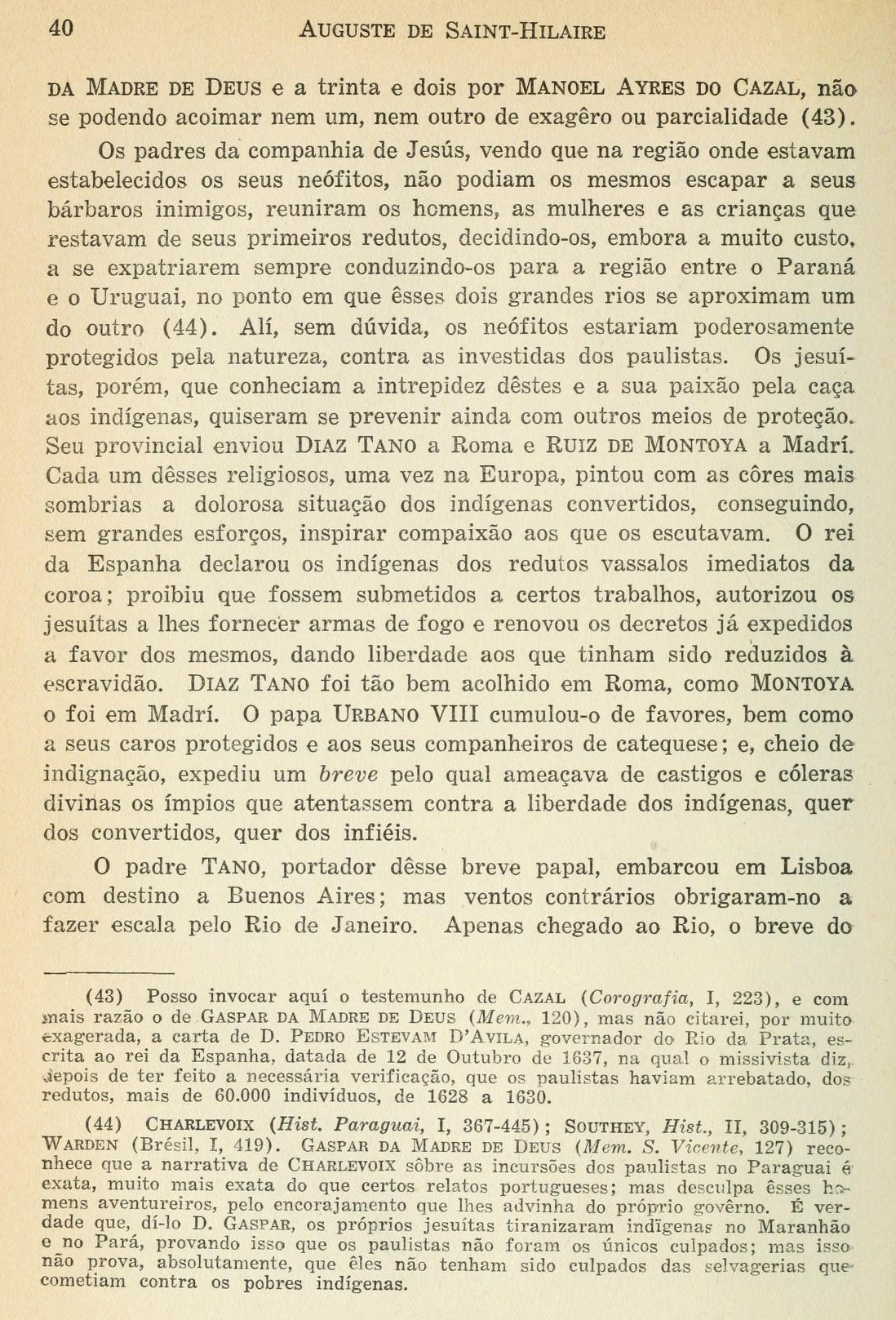 Viagem a provincia de São Paulo e resumo das viagens ao Brasil, Provincia Cisplatina e Missões do Paraguai Data: 01/01/1940 Créditos/Fonte: Auguste de Saint-Hilaire (1779-1853) Página 40 ID: 12138