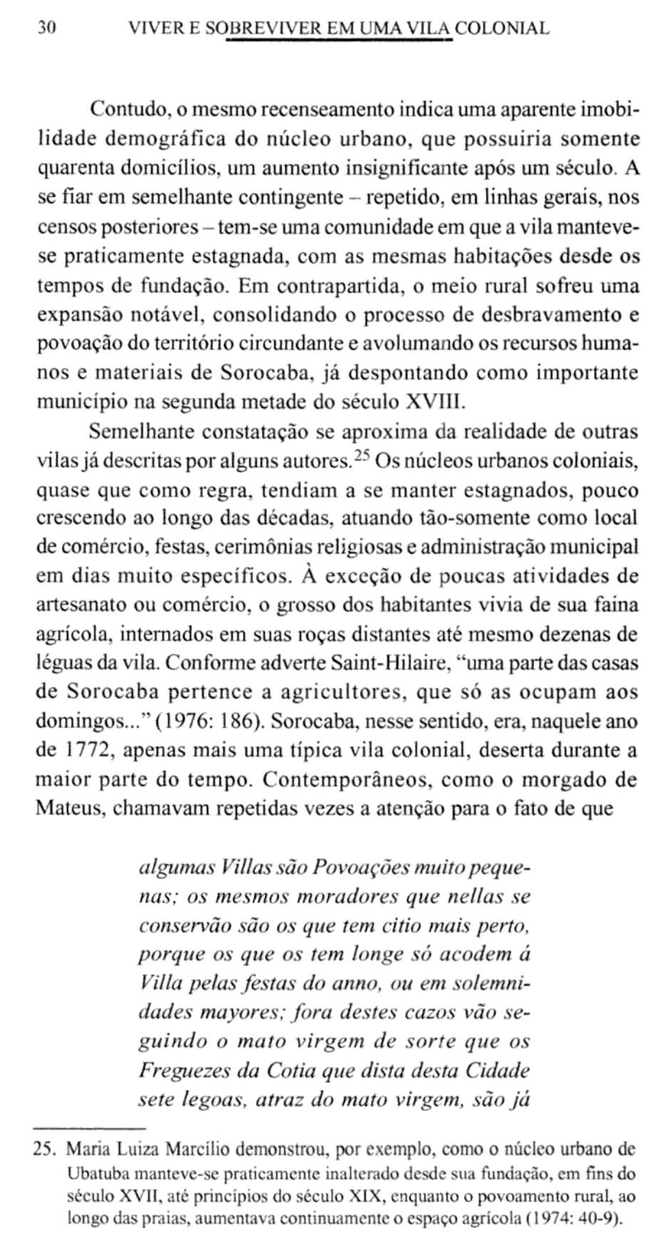 Viver e sobreviver em uma vila colonial: Sorocaba, séculos XVIII e XIX Data: 01/01/2001 Créditos/Fonte: Carlos de Almeida Prado Bacellar Págia 25