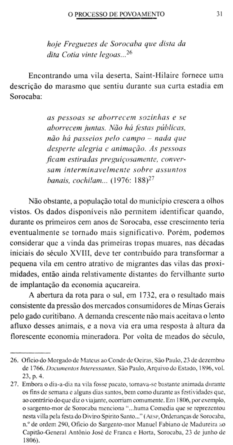 Viver e sobreviver em uma vila colonial: Sorocaba, séculos XVIII e XIX Data: 01/01/2001 Créditos/Fonte: Carlos de Almeida Prado Bacellar Página 26