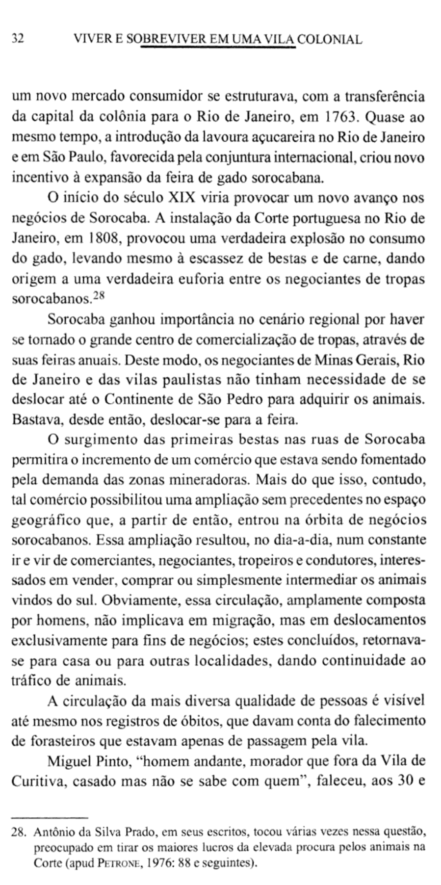 Viver e sobreviver em uma vila colonial: Sorocaba, séculos XVIII e XIX Data: 01/01/2001 Créditos/Fonte: Carlos de Almeida Prado Bacellar Página 28